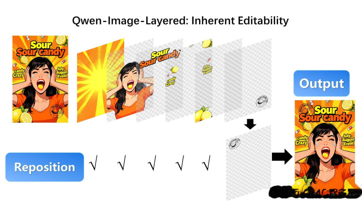 它意味着一旦快门按下或渲染完成,图像中的光影、物体与背景便凝固成了一个无法分割的整体。几十年来,设计师们如同数字考古学家,挥舞着“魔棒”和“套索工具”,试图从这块平整的像素化石中艰难地剥离出目标物体。然而,近日发布的 Qwen-Image-Layered 正在将这把考古铲送进博物馆。它的出现证明,视觉的终点并非静止的平面,而是可被无限拆解的流动资产。